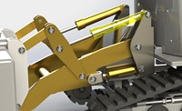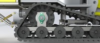 2.履带装置:本作品使用了履带结构,使清雪车在雪地里行动自如,不受积雪的影响不会出现打滑现象。因为本作品的整体重量控制在4吨内,所以本作品的履带结构使用了橡胶材质。橡胶材质的优点是承载能力、牵引力大大增强,具有噪音低,而且不伤及柏油路面,具有良好的行驶性能。