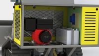 3.尾端扫雪装置:本作品在机器尾端设置了一个滚刷装置,对前方清理过的路面进行再次清理。在清雪车前进时,滚刷以大于200r/min的速度将路面再次清理。滚刷采用特种材质扫毛,清扫彻底,使用寿命长;采用实芯高承载力的耐磨支撑轮,大大提高扫雪机的可靠性,刷毛离地高度,接地均可任意调整,提高作业效率,效果更优。