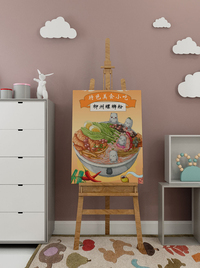 创新思维:海报以简洁,明主。主体加以产品并以黄色为背景,衬托画面。以辣椒,竹笋,螺蛳为主要代表,体现了螺蛳粉的制作跟食材。