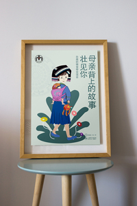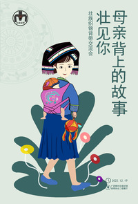 我的海报《母亲·背上的故事》是广西壮族非遗文化设计画面主要是母亲背着小孩,壮见你母亲背上的故事,背带又称“背儿兜”,主要用于背小孩,在发挥背小孩之功能应用的同时附有祈福、求吉以及审美等文化功用。 壮族背带图案是壮族服饰文化中的一部分、壮族背带的民俗文化古老的习俗 在广西壮族山村至今还保留着这样一种习俗——送背带。在壮族的生存与精神世界中, 容纳着人类文明进程中古老的文化方式壮族背带,被喻为“背上的摇篮”,让母子身心相连,记录的是人世间最美丽的风景母爱与小孩小小背带,反映了壮族的传统文化内涵,凝结了壮乡人的智慧与精神。背带工艺是壮族极具代表性的手工布艺之一,是中国民间美术中不可缺少的一部分,显示出独特的民族艺术特征。壮族母亲的服饰端庄得体、朴素大方,画面主要色是绿色在中国文化中有生命的含义,也是春季的象征,海报设计元素有壮族铜鼓有绣球背带壮族服饰设计理念是每一个名族都有自己的灿烂文化,设计者所探索文化特色的源泉,在信息时代海报设计虽然非常注重与国际广告媒体间设计观念,设计技术的相互融合,相互推动,获取共性发展。但作为一种社会的文化设计,它继承着千年灿烂的传统文化,需要本土文化的滋养,才能得以发展。是一张宣传广西背带非遗海报。