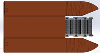 主要结构包括两个1.5KG推力的转向推进器,传送带,垃圾储存箱,摄像头探照灯组成的视觉模组,压实装置,24v磷酸铁锂电池,电源转换器等部件组成。