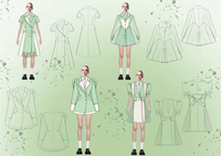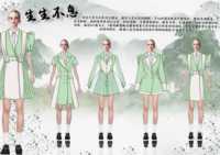 生生不息为本系列主题名,其颜色以绿色为主、米白色为辅。颜色和主题的灵感来源于自然界的植物,寓意着新生的开始,将其灵感融入服装中,希望能给予初入职场与瓶颈期的人们一种柳暗花明又一村的希望,在未来的道路上不停止、不放弃。
