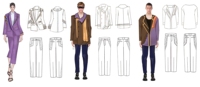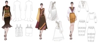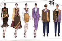 《裕》是这次参赛作品的名字,参考的民族是裕固族。裕固族多分布于甘肃肃南裕固族自治县。男子多穿高领左大襟长袍。女子服饰最有特点的是衣服前面有两块旗面。以裕固族的服饰特点,文化图案设计出这套服装。第一套服装采用的是女子旗面做出的马甲,非常具有裕固族的特点。第二套,衣服的花纹采用的是裕固族传统花纹的变形,左边的纱巾像主人献给客人祝福的哈达。第三套和第四套,是职业的基本套装,多用变形的传统图案。男装,是裕固族男装的转换而来。