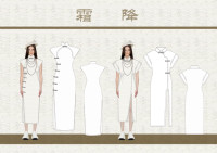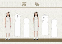 此设计灵感来源于二十四节气之一的霜降,霜降时节,万物毕成,毕入于戌,天气渐寒始于霜降,给人清冷的氛围,有象征女性高贵聪慧的意味。霜降后开始入冬,冬孕育着春,蕴存着春天万物复苏的生命力,正如女性一般,柔和却有着不容忽视的力量。