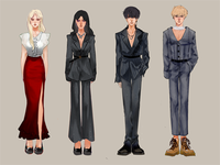 本系列作品偏轻商务装设计,服饰修身并打造职场整体轻松惬意的着装感,面料选高级灰色、高明度银灰、暗红等色调。灵感来源于对生活的理解与拆解,不顺流机械般地运转。自我是自己的演员,着装轻松,气质优雅、自由,似舞台光的细闪给人自信雅致的设计感。