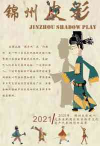 锦州皮影戏是一种古老的传统民间艺术。最早可追溯到清代,已有200多年的历史,有四代传人。史料记载:“明末清初,皮影戏由关内传入,外地皮影艺人在锦传艺收徒,以此为业,凡农闲、庆丰、许愿、求雨、庙会、节日均有影事活动。”