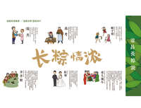 遂昌长粽不只单纯是一种美食,更是一种文化和精神的象征,粽子越长,情义越重;内包装盒内以“满月”、“高考”、“送大端午”、“蚊子棕”、“分享粽”、“结婚”六大主题故事以手绘形式进行设计,凸显“长粽浓情——遂昌长粽说”非遗美食包装设计的寓意,寓意新人长长久久、长辈长寿美好、孩子长命百岁、健康快乐。