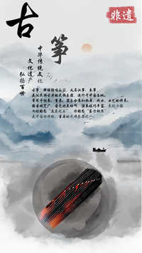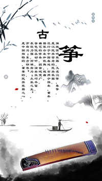 古筝,弹拨弦鸣乐器,又名汉筝、秦筝,是汉民族古老的民族乐器,流行于中国各地。常用于独奏、重奏、器乐合奏和歌舞、戏曲、曲艺的伴奏。因音域宽广,音色优美动听,演奏技巧丰富,表现力强,而被称为“众乐之王”,亦称为“东方钢琴”,是中国独特的、重要的民族乐器之一。是最古老的传统弹弦乐器之一。早在春秋战国时期,它就盛行于陕西、甘肃一带,公元前237年李斯在他上书秦始皇时,曾描述了中国传统筝歌的生动场面:"夫击瓮叩缶,弹筝搏髀而歌乎呜呜,快耳目者,真秦之声也。"兹后,筝常常因之而被称为"秦筝"了。2008年6月7日,古筝艺术经国务院批准列入第二批国家级非物质文化遗产名录。