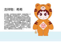 吉祥物的设计是围绕“全国应用型人才综合技能大赛”的宗旨展开的,2022年是虎年,所以主体形象用了老虎的造型并对其进行了创新。在人物面部运用了浙江非遗越剧的头饰和脸谱元素进行结合,意在表现中国社会亦旧亦新的文化样貌。手中的丝绸作为杭州市的非遗寓意着此次比赛项目种类丰富多彩,肚子上的剪纸“杭州”代表着浙江省会城市,同时有莲花和莲藕的剪纸设计与“杭州”二字相辅相成。剪纸的形状与背景的形状采用了中国传统文化中的方圆结合。希望在本次比赛中各位选手之间能够圆方结合,取长补短,一同创造更包容和谐的设计环境。人物整体设计产生了积极阳光,热爱传统文化的希希虎形象。