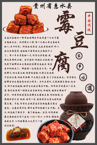 霉豆腐又名豆腐乳,是一种经过微生物发酵的大豆食品,已有上千年的制作历史,滋味鲜美,风味独特。因为霉豆腐的制作工艺比较长,从做豆腐到变成霉豆腐需要10多天的时间;天气凉的季节,则需要更长的时间。对豆腐的细嫩、干湿要讲究,豆腐要做成中豆腐或老豆腐,不能太嫩,否则做出来的霉豆腐不成形。