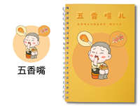 作品一是五香嘴,绘制一个吃零食的小孩儿,在吃零食的时候也想其他的美食,以表现其贪吃特点。