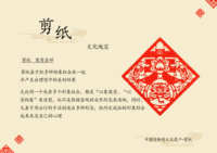 中英结合的标题让更多人知道剪纸的名字,简单的介绍更是吧剪纸的艺术地位提现的淋漓尽致。经典的黑红配色具有强烈的视觉冲击,右下角更是用中国剪纸的拼音告诉世人这是我们中华民族特有的文化遗产。大红色的穗子放在剪纸下方即起到装饰作用,又使剪纸与背景融合,图片处理使用背景模糊的处理手法,让剪纸突出,背景还有红色的剪纸以及青花瓷起到修饰作用,藏青色的桌布有着白色的花纹为沉闷的氛围添加一模色彩,使得整个画面变得灵动起来。