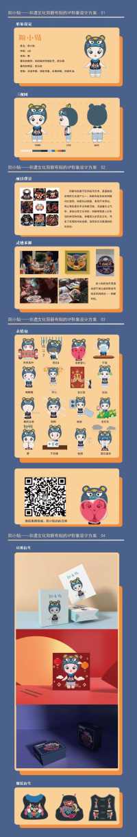 阳小贴具有阳新布贴特色,主色为深蓝色,加之红、黄、兰、绿等饱和色的图案,突出阳新布贴色彩和明度对比强烈,构图自由随意的特点。同时将抽象的传统非物质文化遗产借助新媒体技术转变成活灵活现的吉祥物形象,使得阳新布贴这一传统文化不只是停留在会绣活的阳新妇女手中,而是以一种更新颖、更吸引人的面貌出现在人们的视线中,从而带动更多的人群关注、保护、继承它们,让非物质文化遗产焕发新的生命。