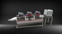 因此,我们设计了一种可以实现自动撒料的机器,其三维效果如图2-7所示。该作品机身小,方便搬运,其主要功能依靠电机带动滚轴滚动,从而使鱼蛋能够顺利滚落,同时进料机构中的电机启动带动传送带进行鱼蛋的稳定输送,进入料仓后,撒料机上的偏心轮电机振动,实现调料的洒落。同时,工作机构还配有毛刷,保证了鱼蛋的受料均匀。主体的料仓结构还可以实现模块化的拼接,从而保证该生产线的多样性,更加贴合人性化设计。