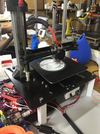 传统FDM 3D打印设备的打印台面均悬臂支撑,在国际上较普及的两款设备:Makerbot及Ultimaker也均采用了这种结构,而很多专业级3D打印机采用了复杂的传动机构,导致设备制造成本上升之外,增加了制造难度。