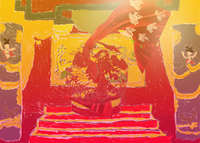 本作品是一幅富有传统文化韵味的插画,采用“油画”风格进行创作,作品中一个女性在舞台上跳舞,手中挥舞着红旗,表现了爱国精神,红旗上飞来的和平鸽,象征着对和平与自由的向往与追求。两边柱子采用“中国风”的设计风格,表现出浓浓的爱国情怀。女孩的设计采用剪纸的风格,剪纸是一种镂空艺术和最为流行的民间艺术,作为非物质文化遗产,其传承赓续的视觉形象和造型格式,蕴涵了丰富的文化历史信息。