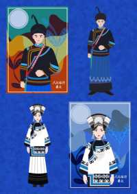 这副作品名叫兹玛格尼,在彝人语言中是吉祥如意,健康美好的意思,作品插画是参照少数民族彝族的特色服装所绘制的扁平风风格的插画,这副插画运用到来产品的包装盒上,和书签,具有民族风格的特色,符合男女老少的审美,受益面广,也能从作品中体现出中国民族工匠艺术,这幅图绘制中将人物服装一比一拟人化绘制,颜色还原了服装本身颜色,整体服饰色彩较为丰富,款式变化多姿,并且以大量银制品和作刺绣装饰。彝族妇女上身会穿镶边或绣花的上衣,头上会有包头和耳环,下身会穿裤脚绣着精致花边的长裤;背景抽象的用的山,草,河流,这些自然景物也是凉山山地的地理特色。女性人物的动作双手自然下垂,眼神轻轻的转动显现出女性的柔美,男性双手握拳,眼神坚定展现出男子的刚劲。这幅作品商业价值在于商品包装和文化宣传。