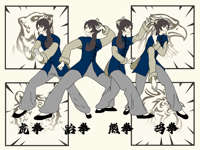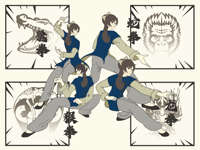 设计灵感来源于形意十二形拳中每一套拳法打法中的一个代表性的动作,根据这个动作设计出符合这个拳法的整体形象。