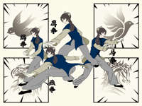 十二形借寓十二种动物的特点及形像,融入武技中,如龙的飞腾纵横,虎的威猛气势,猴之灵,燕之巧,鸡敏好斗,鹰猛等。仿其形其意而入攻防拳技中,即是精妙的攻防,又是练身的良好方法。