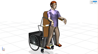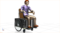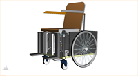 轮椅主要由三个装置组成,包括使用者站立辅助装置;小腿升降装置;腿部开合装置。使用者站立辅助装置主要包括丝杆滑块机构和四杆机构,四杆滑块装置在电动机的驱动下,滑块向前移动使得四杆机构的位置发生改变,底坐板和背靠板在四杆的驱动下推动使用者向上直至站立起来。小腿升降装置主要是由丝杆滑块装置来实现的,丝杆旋转带动滑块机构上升,不固定的杆发生位移完成了小腿的升降功能。腿部开合装置主要是由两组曲柄摇杆装置组成,在前一组摆动杆的运动后,后一组摆杆也开始在转动副上开始转动,这样就达到了使双腿实现开合的目的。