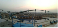 3、开发风电叶片疲劳试验惯性自适应激振技术。开发了基于Bang-bang理论的自适应扫频识别技术,建立了叶片共振频率漂移下的自动搜索跟踪和伺服调速机制,有效克服了昼夜温差等环境因素造成的叶片基频漂移难题。开发了集群化全闭环加载控制技术和装备,实现了风电叶片疲劳测试全周期无人值守;研制了组合式电驱动惯性激振装备和亚洲最大的全尺度结构测试平台,惯性激振力从5000N提高至(n×18000)N,单支叶片平均试验周期从6个月缩短至3个月,稳态误差小于0.5%,实现了叶片实际运行工况载荷下的疲劳损伤高保真度等效测试。