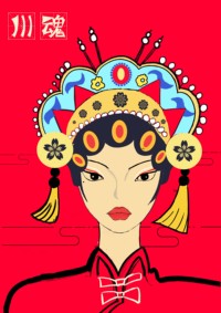 以国风人物为主角,头顶川剧的装饰。川剧表演生活气息浓郁,生动活泼,风趣幽默,为了更好地塑造人物,川剧艺人创造了变脸、藏刀、钻火圈、开慧眼等许多绝技,表演时火爆热闹,新奇有趣,形成川剧的一大特色。国风的神态更显得活灵活现。