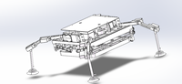 结构说明:机器人底部由四个手臂支撑,四个手臂都具有驱动能力,确保机器人具有前往各个方向运行的能力,上此同时机器人的各个手臂均具有升降功能,即能够确保机器人在相对不平的墙壁上能够自由地运行,且四个手臂底部都具有吸盘设置,可以使整个机器人可以有效且牢固的吸附在玻璃上,往上看是一个正方形且具有清洁能力的机器人机身,运用正方形机身清洁面积大且可以有效的清洁各个角落。