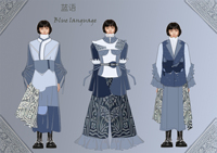 本系列设计名称为《蓝语》,主题是绘历史·创文化,风格是复古女装设计风格,灵感来源于温州非物质文化遗产文化中印染“四缬技艺之一的蓝夹缬。在此次设计中,我运用到吉祥的植物纹样图案和复古款式服装结合,色彩选用淡雅的蓝色系,从而体现中国文明历史的艺术魅力,让非物质文化遗产文化赋予新的生命,紧跟时代风尚。历史与潮流,两种不同风格的艺术交融,创造出新的文化。