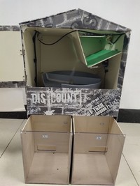 在无人使用的时候,智能分类垃圾箱处于低功耗睡眠模式;当用户走近垃圾箱时,安装在垃圾箱正前方的人体红外感应模块会检测到人体接近,随后将系统唤醒,垃圾箱上方显著位置安装的高亮显示屏开始循环播放垃圾分类宣传片。由于智能分类垃圾箱上搭载了FreeRTOS操作系统以及LittleVGL图形操作界面,用户可以方便的通过点击电容触摸显示屏来选择功能,然后根据相应的语音指引及显示屏上的消息框提示,进行相应的操作,将垃圾放入垃圾投放口,随后系统自动完成垃圾的分类投放。垃圾箱底部有四个小的垃圾收集箱,分别用来存储四个类别的生活垃圾。四个小垃圾箱可以分别从垃圾箱的左右两侧抽出,不仅给垃圾的清理工作带来了极大的便利,还可以充分利用垃圾箱的有效空间。在每次垃圾投放后,垃圾箱会自动进行垃圾满载检测,当某个种类的垃圾收集箱满载时,会拒绝响应该种垃圾类别的垃圾投放任务,并在显示屏上有相应满载提示,管理员也可以在云服务器端实时监测到垃圾箱的满载情况,以便及时通知环卫人员对满载的垃圾进行清理。
