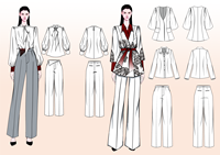 本系列设计作品灵感来源于中国传统非遗技术剪纸,剪刀与彩纸的碰撞,表达着生活中的喜怒哀乐,职场如是。四款套装设计利落,大部分采用了x型廓形,腰节分明,多变的领型和丰富的袖型将职场女性的心机缓缓流露;选择暗红色调搭配白色和灰色,有对比也有融合,加入隐约的剪纸纹样,平淡中增添细节,成为职场着装的点睛之笔,将职业女性的自身魅力自然表达。