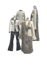 在工艺上,我们追求服装造型简洁、线条流畅,并且服装是通过分解又重新拼接在一起的设计手法使服装的每一部分都是完整而又可以独立存在的个体,可以拿出来重新搭配,以达到不同的效果。