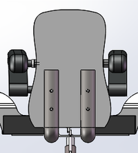 2)对轮椅椅座的架构设计做出了较大的创新,新增了椅座宽度和高度以及角度可调的功能,同时,采用独有的符合人机概念的座椅造型。