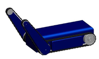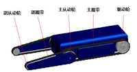 本作品为一款复合式全地形平台机器人。该平台由履带走行系统、轮式走行系统和滑橇组合辅助系统三部分组成。设计中,一方面深入挖掘履带式、轮式和滑橇式的潜力,增强越障平台采用相应走行方式时的优越性,着眼轮履结合易导致的结构不紧凑、体积较大和控制复杂等难题,有针对性地进行了克服。另一方面。选用快充式气垫和折叠式滑橇组合的方式克服了无环境依托或极少的环节依托情况下的快速前进。例如沼泽、沙漠等特殊环境下,通用行进装置无法发挥作用而滑橇组合可以继续发挥作用。