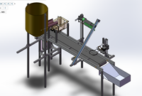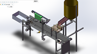 装置首先将合适大小的水果置于水果上料桶内,上料机的水果桶分为内外两层,两层紧密贴合;外层与机架固定,内层由桶底的一个电机驱动做相对于机架的旋转,在内层桶与外层桶桶侧身最底部开有相同大小的一个洞,以此保证内层桶在旋转一周的过程中只有两个洞重合时才会落出一部分水果,水果由一个滑道落入置于传送带上的碗中,碗由传送带运送往下一个加工区域。