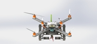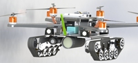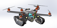 目前的陆空两栖飞行器趋于一体化设计,可具体分为两种:第一种是最初的四旋翼和自由轮结合的方式,此设计在地面移动时通过桨的旋转提供动力存在很大缺陷,由于轮子均作为从动轮通过机体的倾角产生移动,因此在控制机器人在前进、后退、左右移动时极为不方便且速度不能控制,其次由于机器人具有惯性,因此基本无法实现从运动状态马上切换为停止状态;第二种是目前常见的仿生型设计,在旋翼的底部加入多足驱动,使之完成地面移动,但是行动速度极为缓慢,基本上无法在规定的时间内完成特定的任务,从而降低了效率。