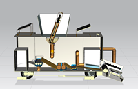 分离完成后的玉米粒,通过传输装置传至玉米粒存储箱下方,通过上图绞龙旋转,将玉米粒传至车体上方存储箱。