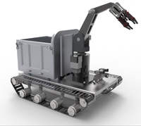 一款新型地震搜救机器人,应用了机械臂、探照灯、车斗、履带和照明灯装置,地震过后,我们的机器可以先代替人进入震区进行探测,履带增加了机器的稳定性可以平稳驶入,拥有探照灯可以人为远程操控让机器更加灵活,遇到障碍物还可以通过机械臂搬运小型的障碍物,可以让机器通过更多地方,车斗还可以给受伤人员或重要物品先给带出震区保证安全,探照灯上还有热成像功能,能够发现被困人员,并且通过机械臂来进行救援,还有照明灯能更好的观察震区里的情况,可以实施更加有效的救援。