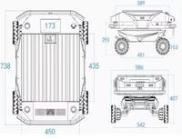 通过前后雷达和全方位激光扫描通过麦克风阵列10多个传感器传输给无人车,通过芯片控制,根据地形不同,凭借独立悬挂设计,四驱差动方式,进行高底盘可以进行原地转动,请问前进。并且根据不同客户的需要设计了两种不同运动地盘,搭配麦克伦姆越野轮胎Thunder Mini越野能力和Octopus Mini可以使适用多种地形,全方位运动,任意角度转向灵活。后期可根据需要搭配机械臂,进行装载搬运活动,从而可参与其他领域工作。