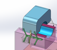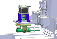 随后,消毒装置进行运动,首先,利用橡胶滚轮实现棉花的进予,利用凸轮、弹簧、刀片的配合实现对棉花的切割、接着用注射器实现对棉花碘伏的注射,最后通过气缸的工作将消毒棉花压到患者手臂上,在与X轴的配合下完成充分的消毒工作。