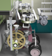 本作品设计的农用机器人集全自动化的菜苗移栽种植、根茎类蔬菜收割功能于一体,并创造性地将零功耗通信技术和智能装备应用在蔬菜生长管理系统上,搭建的农业管理平台可实现大棚蔬菜无人化种植、生长全过程监督管理。其显著创新点在于:育苗移栽装置可进行加茬栽培、自动送苗,种植株距可调,解决了传统的夹取式移栽损坏苗株的问题,提高了大面积叶菜苗的移栽工作效率;根茎类蔬菜收割装置作为可拆装模块,实现一机多用,收割的同时对菜叶根系和外叶进行处理,提高蔬菜收割效率和质量;零功耗管理技术的应用可减少现有大棚管理控制系统中传感器、电路板等电子零件的损坏率,对实现免维护、低成本的农业机械智能化建设有着重要的意义。