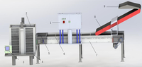 (图中:1 变频器; 2 网格承载装置; 3 微电脑控制器; 4 升降平台; 5 杆类产品; 6 新型金属网格; 7 传送带; 8 传输管道; 9 倾斜传输平台)