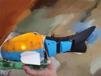 针对移动水质检测仪器缺乏的现状,本团队设计了一款基于仿生技术的水体检测装置。该装置可应用于湖泊水、农业灌溉水质状况检测、鱼缸水等水质检测和海洋观测。其外形结构类似仿生鱼,利用先进的仿生学原理进行设计,采用运动控制技术来模拟鱼类运动,通过集成检测模块可对水中的PH值、电导率、含氧量等进行有效检测,并将所测数据传输到手机上实现实时反馈,以便于进行统计分析某水域的水体状况。本产品内部集成双模定位系统,可实时获取水体检测的具体位置。产品通过自主设计集成电路板完成高效率控制,鱼身下部增加检测装置实现检测智能化且三舵机结构实现尾部多关节仿真运动,较好保证了仿生鱼能更灵活地检测某水域中的水质。与传统路上水质在线检测仪相比,该装置具备独特的潜水动态水质检测功能,机体和尾部具有足够的灵活性,成本低、体积小,能耗小,耐腐蚀、耐压、耐磨损,易于维修且不会对水下生态系统造成严重负面影响,具备较好的创造性、先进性、可行性。本产品已申请发明专利,设计制作的实物模型,实验测试效果较好,可为水质调控监控提供基础数据,可提升农业、渔业等的收益,市场应用前景广。