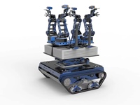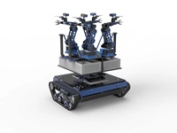 本款智能云端-四臂番茄采摘机器人主要由采摘收纳系统、视觉定位系统、智能学习系统和行走定位系统四部分组成。采摘收纳系统由采摘臂、末端执行器收纳装置组成。视觉定位系统由视觉传感器和图像处理装置组成。智能学习系统主要包括智能感知系统和大数据处理系统。行走定位系统主要包括移动装置和升降装置。各部分相互作用、共同配合,从而实现番茄采摘机器人能够在温室大棚或无人农场等现代农业领域进行自动化采摘作业。