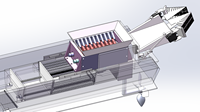 圆筒传送带:利用圆筒的特性,其中为镂空的设计可将垃圾中含有的水分过滤,将大型垃圾与小型垃圾进行分类,小型垃圾将落入水草浮萍收集箱,大型垃圾将进入下一模块。