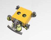 船舶机器人的行走机构主要是由两条相同的履带组成,两条履带由一个电机控制,工作时只两条履带同时工作,通过差速器,这样便可以实现机器人的直线与转弯。行走主要通过链轮传动的形式进行,电机通过链轮带动履带行走,从而实现行走机构的行走。履带上面装有永磁体块和磁轮,用于实现吸附的功能。清刷机器人上面的张紧机构用于防止链轮与链条不紧密接触。