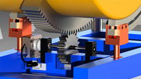 首先,内壳外设置有弧形齿条,底座有小齿轮。底座插电后,电机驱动促使小齿轮与弧形齿条正确啮合,有规律的促进齿条的左右传动,从而实现整个内壳的小幅度左右转动,进一步模拟父母将婴幼儿捧在胸前左右摆动的样子,达到哄婴儿入睡的目的。