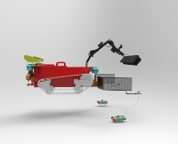 在生活中你经常看到水上和陆地上存在各种垃圾它们清洁起来十分麻烦十分消耗人力物力对此我们设计了一款可用于水路两栖的清洁船来克服这些困难。在水上通过拦网和探测器收集查找垃圾通过垃圾刷和传送带传递垃圾在陆地上通过模拟日常打扫通过机器臂清理垃圾。该产品使用于水陆而且操作方便无人控制有效清理小型垃圾。有许多创新和实用功能
