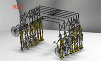 4. 模块化。据实际情况灵活调整车架数量;可伸缩性,据实际停车情况拉出相应数量的停车架,未使用的停车架处于收缩状态更加节省了地面空间。