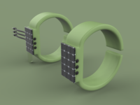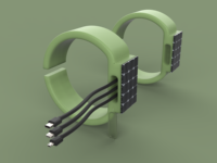 由于传统的充电宝体积大,电池容量小等情况,并不满足人们在外用电的需求,更不便于人们的携带和保管,因此设计的这款是利用太阳能板自行发电可持续为用户充电的太阳能手环充电宝,满足人们在外的用电需求,将充电宝设计成手环形状,便于人们携带和使用,也大大的降低了环境污染,实现绿色生活低碳生活,该产品相比于传统的充电宝体积更小更轻盈更便于让人们戴取,并且采用了透明的硅胶盖可更好的保护三条线的充电接口,让人们用起来干净放心。该产品还设计了三个独立的智能按钮,可供用户挑选符合自己手机型号的充电接口,避免了三条线一起出来妨碍用户的使用,智能按钮按一次对应的充电接口便会出来,在按一次充电接口便会缩回,大大提升了用户的满意度和支持度。此外,该产品采用的是硅胶表带,柔软且伸缩性好,可供不同体型的用户使用。