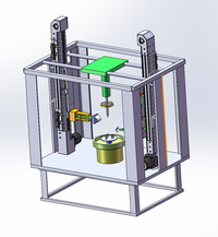 首先对菠萝的切割,我们选用的是旋转切割法,由于菠萝大致呈现的是椭圆柱型,所以我们将刀具与机架用一弹簧连接,如此当刀具切到不同半径的菠萝时,总会切去其薄薄的一层外皮,在最大程度上减少了果肉的浪费。其次是对菠萝去眼的操作,由于菠萝眼是按照一定的倾斜方向进行排列,所以我们的刀具斜放,在去眼过程中,降低菠萝的旋转速度和刀具的下降速度,如此可对菠萝眼实现螺旋式切割。最后切割完成后,最上方的切块装置经由螺旋杆下落实现切块操作。在切削过程中,其掉落的果皮果屑由机械底部的收集装置进行收集,加强环保措施。